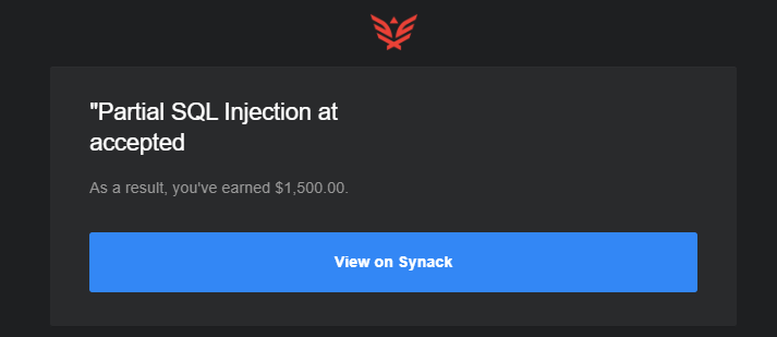 In Synack terms, this is a partial SQLi as I did not retrieve data from inside the tables, but at this point I just wanted to put it in before the target went offline or someone beat me to reporting it.